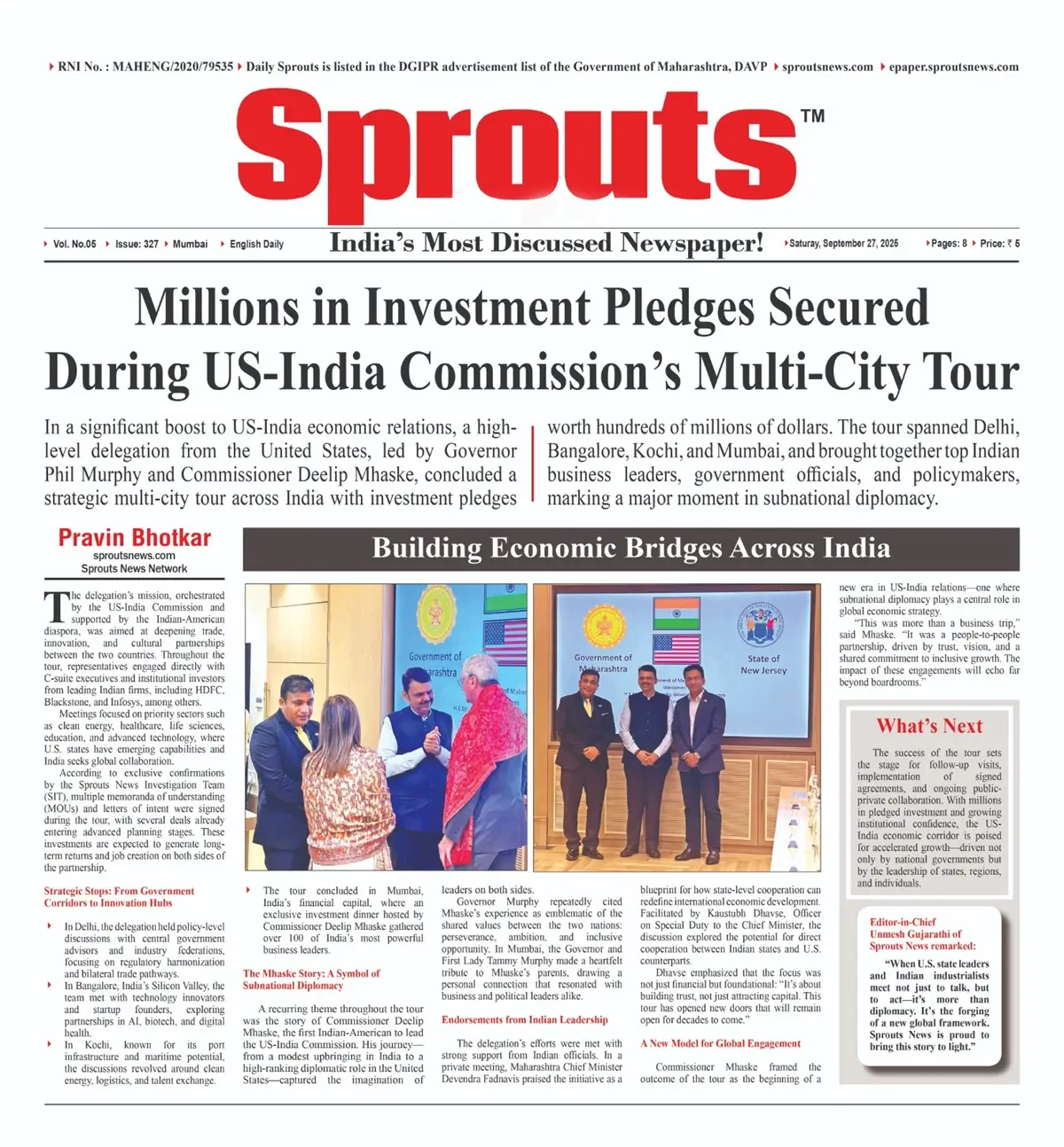 “When U.S. state leaders and Indian industrialists meet not just to talk, but to act—it’s more than diplomacy. It’s the forging of a new global framework. Sprouts News is proud to bring this story to light.”